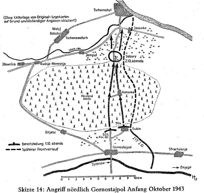 Уже 1 октября советскими войсками был взят Чернобыль. Успех закрепить не удалось. Немецкие войска быстро перегруппировались и бросили на Чернобыль танки и мотострелковую технику. 3 октября в районе Рудни Ильинской появилось до сотни немецких танков, которые двигались в сторону Чернобыля.