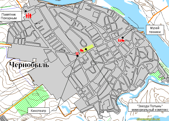 Администрацией зоны отчуждения, для наполнения музея была собрана часть памятников и экспонатов из брошенных населенных пунктов чернобыльской зоны отчуждения. Они были установлены в разных частях аллеи памяти, которая была заложена в центральной части города Чернобыль. На карте города Чернобыль показано размещения мемориального комплекса относительно других достопримечательностей.