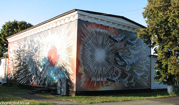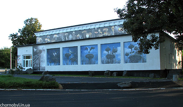 Для мемориального комплекса был отремонтирован фасад и вестибюль кинотеатра «Украина». Сейчас это здание украшено изображениями с аистами на гнездах. По замыслу разработчиков комплекса изображения аистов символизируют трагедию Полесья.