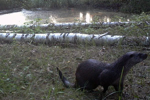 Еще один охраняемый, но довольно обычный в зоне зверь – это выдра. Неожиданно для себя одну из камер установил прямо возле ее участка. И будь я речной выдрой (научное название), то никогда бы здесь не жил, но ей оказалось виднее. Камера фиксировала проворного зверька и днем, и ночью. Сколько их там, трудно сказать, выдры — компанейские животные, но в кадре всегда была только одна особь.