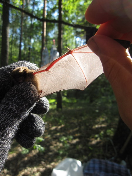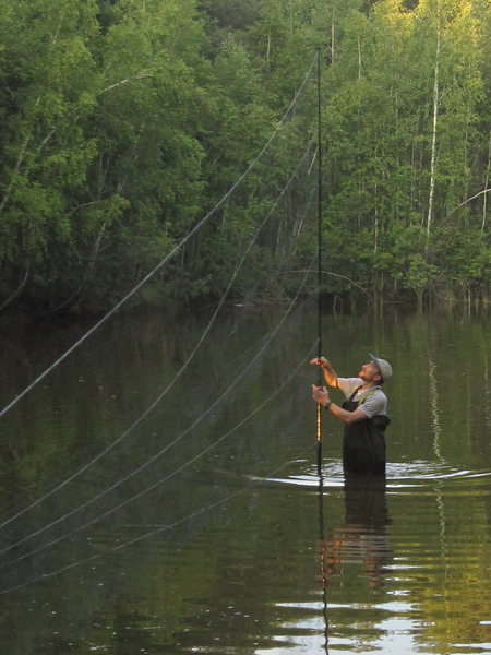 Через наши руки прошло 2356 животных! Большинство отловлено паутинными сетями в местах охоты (на берегах водоемов, на просеках, в брошенных населенных пунктах), но не такими, как для птиц, а намного более тонкими, воистину паутинными – хироптерологическими.