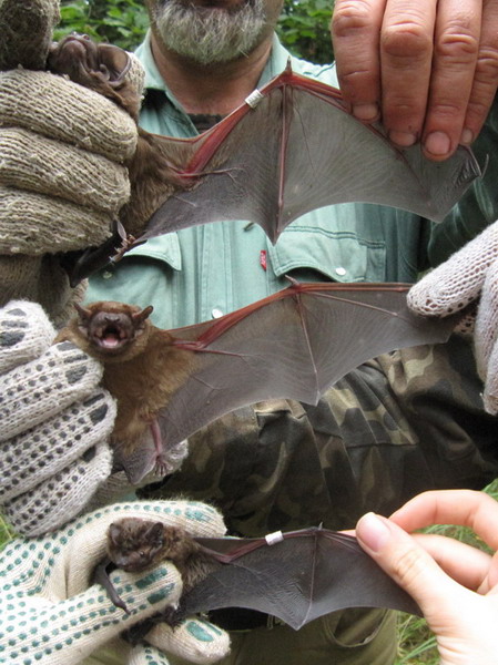 Ни много ни мало, но мы были первые, кто узнал, что в Чернобыльской зоне, а, следовательно, и в этой части Полесья, обитает минимум 14 видов рукокрылых. Они были в наших руках, они нас кусали и метили незабываемым «ароматом»! Из них наиболее обычны (присутствуют везде или почти везде, и часто многочисленны): рыжая вечерница (крупный и довольно кусючий зверек) и лесной нетопырь.