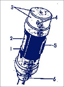 Зонд и блок детектирования представляет собой стальной цилиндрически корпус с окном для индикации бета излучения, заклеенным этилцеллюлозной водостойкой пленкой, через Которую проникают бета частицы. На Корпус надет металлический поворотный экран, который фиксируется в двух Положениях («Г» и «Б») на зонде и в трех положениях («Г», «Б» и «К») на блоке детектирования. В положении «Г» окно корпуса закрывается экраном и в счетчик могут проникать только гамма лучи. При повороте экрана в положение «Б» окно корпуса открывается и бета частицы проникают к счетчику. В положении «К» контрольный источник бета излучения, который укреплен в углублении на экране, устанавливается против окна и в этом положении проверяется работоспособность прибора ДП-5В.