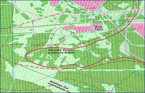 The zone of average radiation damage of pine forest. This zone was affected in the characteristics of mostly young shoots and pine needles turned yellow only on separate sites of branches. Small morphological deviations in the growth of pines were also noted, but these plants have maintained their viability. The absorbed dose 400 – 500 and capacity exposure does 50 – 200 mR/h. The area of the third zone encompassed 43300 hectares, including 11900 hectare of pine forests.