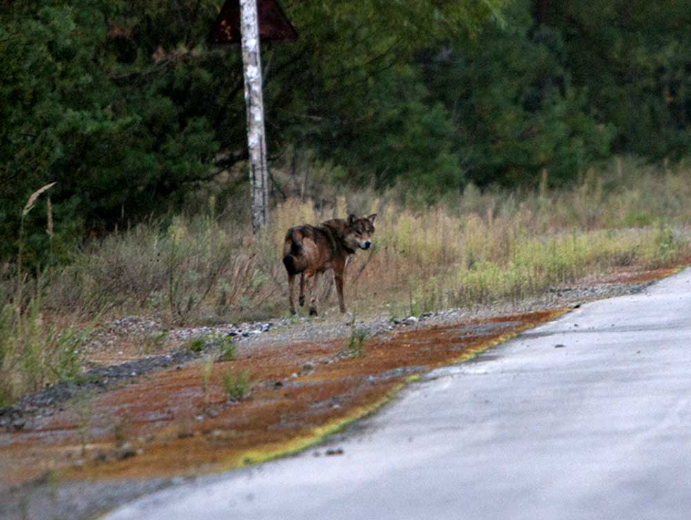 Авторам посчастливилось увидеть и заснять основного хищника зоны отчуждения — волка.