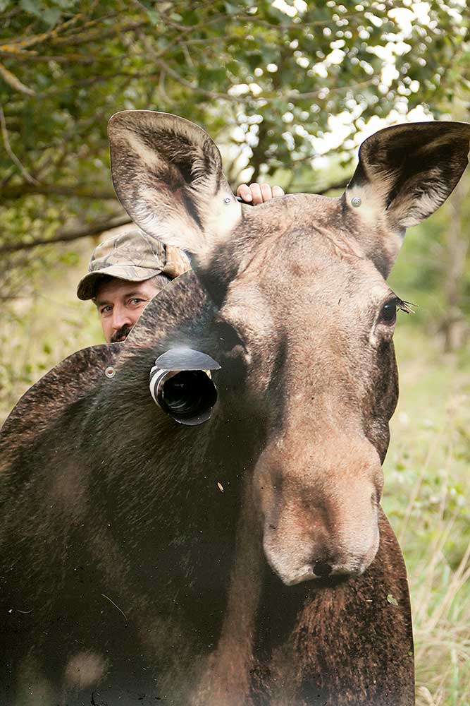 Фотограф использует муляж (фото) лосихи для приманивания самца (авторы фото С.Плыткевич и В.Козловский)