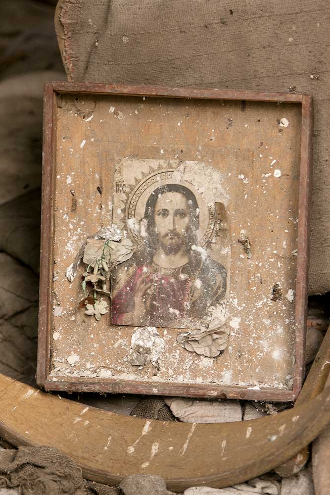 Брошенная икона в одном из остатков сел в зоне отчуждения (Авторы фото — Сергей Плыткевич и Виктор Козловский)