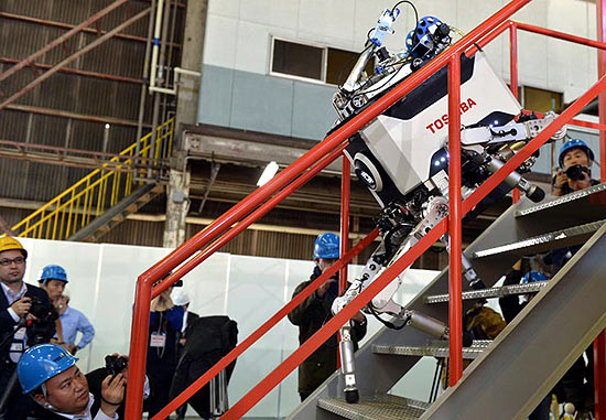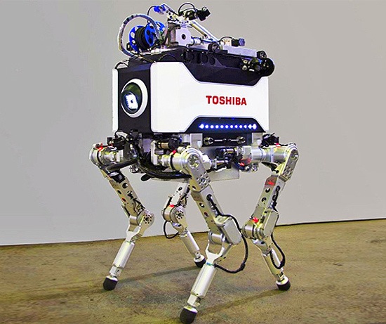 Робот – тетрапод способный работать в условиях высоких уровней радиации и способный передвигаться в захламленных пространствах зданий АЭС Фукусима, был представлен Toshiba Corporation. Уникальный робот имеет четыре тонкие ноги, которые удерживают 65-ти килограммовый корпус, который оборудован камерой и дозиметрическими приборами. Как считают специалисты корпорации Toshiba – инженер Горо Янаси (Goro Yanase), именно шагающий робот может эффективно работать в условиях захламленности проходов в помещениях АЭС и даже может передвигаться по крутых ступеньках. Колесные и гусеничные роботы, применявшиеся для целей радиационной разведки на АЭС Фукусима, не показали необходимой надежности. Конструкция робота позволяет ему передвигаться в узких пространствах коридоров аварийной станции – его длина и высота составляет 1 метр, а ширина около полуметра.