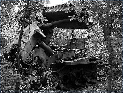 Остатки инженерной машины разграждения (ИМР-2) брошенной в городе Чернобыль (фото 2008 года).