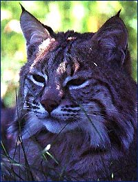 В бинокль я отчетливо разглядел мускулисто поджарое тело рыси на длинных ногах, короткий, словно обрубленный хвост, легкую голову с красивой мордой: большие желтые глаза с черными зрачками, подведенные белой полосой, треугольные уши с темной кисточкой на вершине, длинные «бакенбарды», серебристо-белесая шерсть на щеках, пятнистый узор на лбу и темени, жесткий разлет светлых длинных усов, черная прорезь рта.