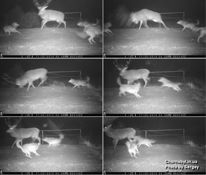 …И тут камера дала очевидный сигнал сбоя. Вначале на черно-белых кадрах появились полосы, а потом они и вовсе стали просто черными… Взаимоотношения хищника и жертвы прерывались на самом интересном месте… Через десять минут, камера как бы опять заработала. Вот оленя уже нет и прошел волк. Еще через 10 минут: волков нет, выполз олень. Все бы ничего, если бы не многоминутные интервалы между последовательными кадрами. Олень остановился в точке, которая 34 часа назад была его надежным бастионом, обнюхал почву и лег. Впрочем, последнего мы не увидели. Камера это не сняла.