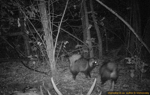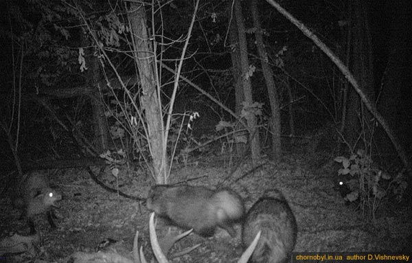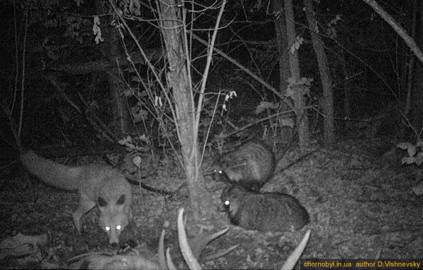 Хорошо заметна упитанность группы енотовидных собак перед зимней спячкой. В зоне отчуждения она нестабильна – животные часто просыпаются при потеплениях. Лисицы и енотовидки в целом, постоянно присутствуют на фотографиях. Независимо от биотопа и уровня беспокойства на локусе, а также присутствия крупных хищников – волка и рыси.