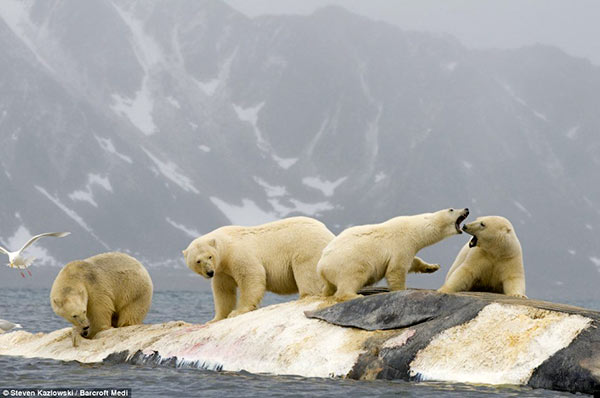 Значение такого ресурса, как падаль – туши мертвых крупных животных, трудно переоценить. Известно, что хищники всех размеров, птицы и насекомые кормятся на каждом таком трупе долгое время. К мертвому зубру или оленю лисицы и волкибудут наведываться несколько месяцев, а после схода снега, еще раз проверят останки. На туше кита белые медведи объявляют «большое китовое перемирие» и жируют неделями, не устраивая драк.