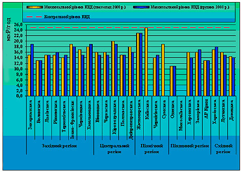Значение мощности экспозиционной дозы в разных регионах Украины