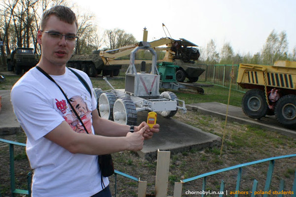 Измерения радиационного загрязнения техники принимавшей участие в ликвидации аварии. В данном случае изучались остатки БАТ. Любопытно, что именно изучение радиационного загрязнения было предельно увлекательным для студентов-архитекторов.