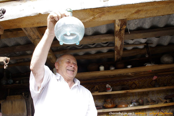 Думаю студентам запомнилось посещение самоселов, которые живут в брошенных селах чернобыльской зоны отчуждения. Посетили уникальный чернобыльский музей созданный Михаилом Шиланом у себя на подворье в городе Чернобыль. Кроме демонстрации экспонатов музея Михаил устроил небольшой концерт. Спел несколько куплетов из сборника стихов. Музыку он написал сам. На фото ниже представлены эпизоды визита студентов к самоселу в городе Чернобыль.
