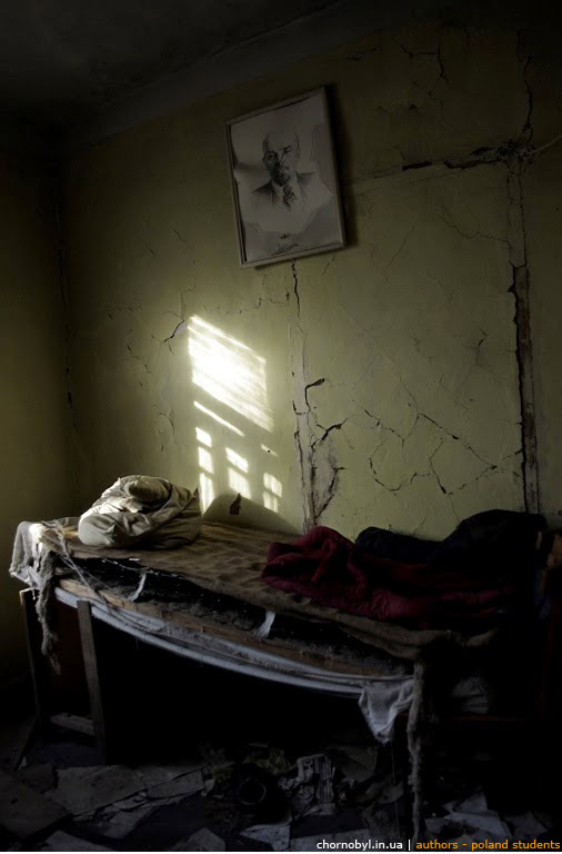 Ленин над кроватью – типичная картина для советского периода. О существовавшей традиции сегодня напоминает брошенный интернат для детей в одном из сел зоны отчуждения ЧАЭС.