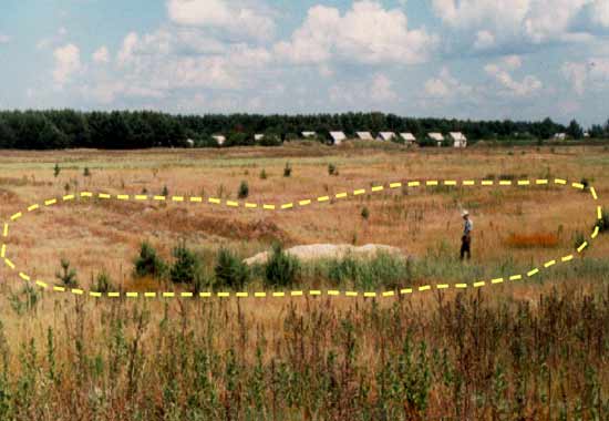 На фото представлен размер такой аномальной зоны – ловушки для радионуклидов. Фото выполнено в районе села Беневка зоны отчуждения ЧАЭС.