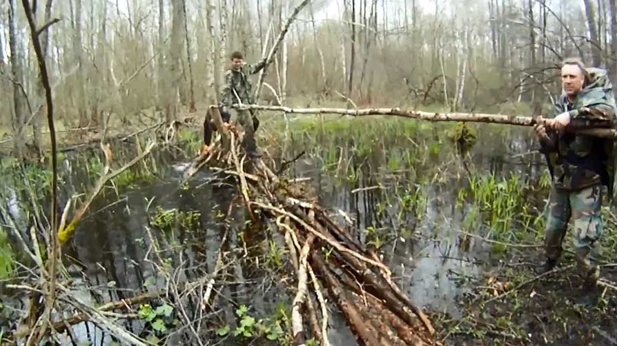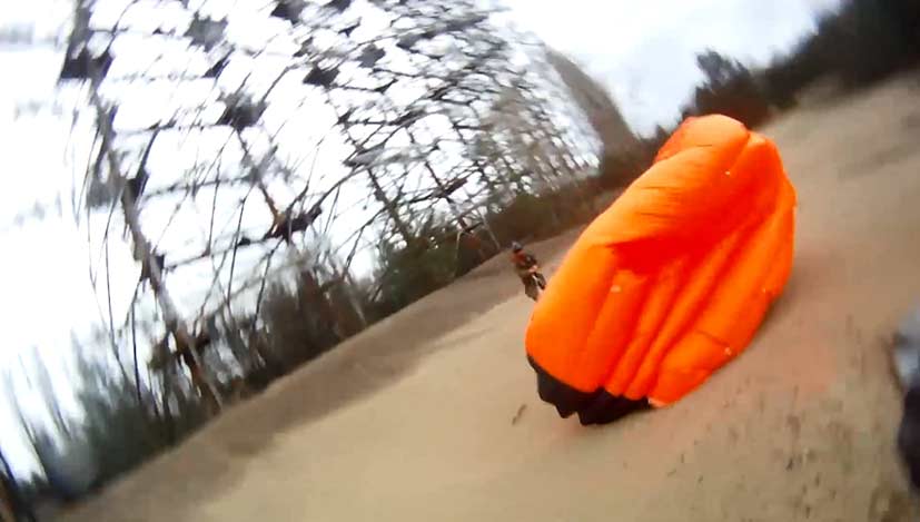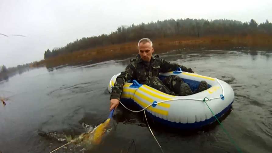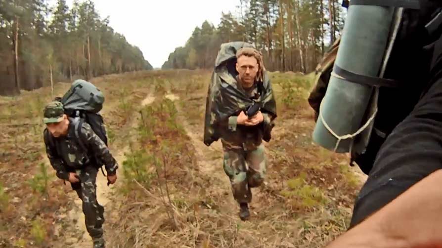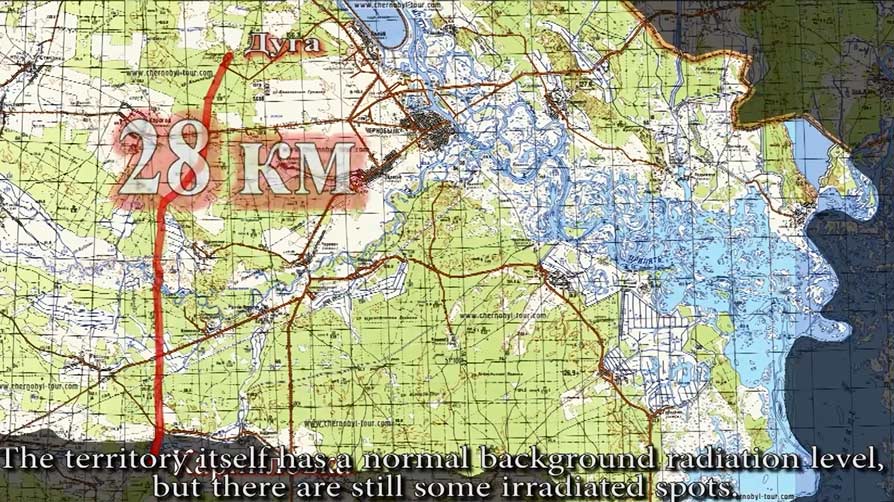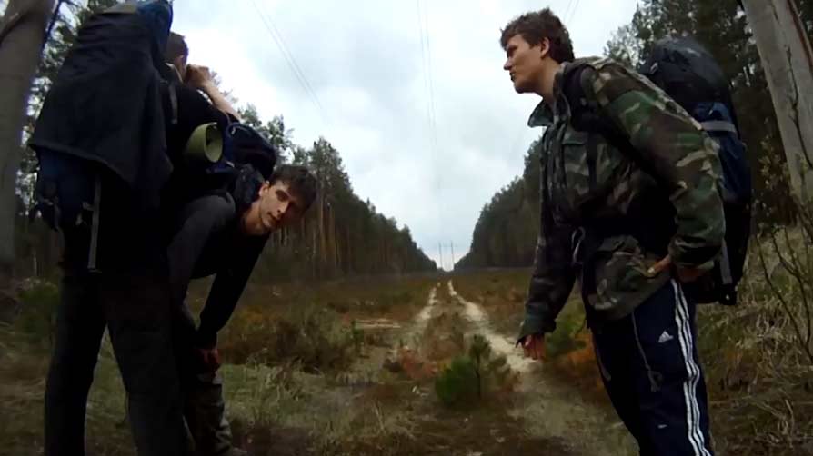 Показаны условия передвижения по пересеченной местности чернобыльской зоны. Особо колоритно выглядит преодоление реки Уж с помощью детской надувной лодки. Использование такого плавсредства объяснимо – легкое, дешевое и бросить не жалко.