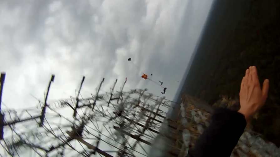 Очевидно, что такое событие так и осталось бы в личных воспоминаниях участников безбашенного похода на Чернобыль-2 если бы не фильм, который был ими же смонтирован и выложен в сеть. Снятое сталкерами видео демонстрирует все детали нелегального похода по зоне, приготовление к прыжкам и главное… САМИ прыжки с антенн радара!