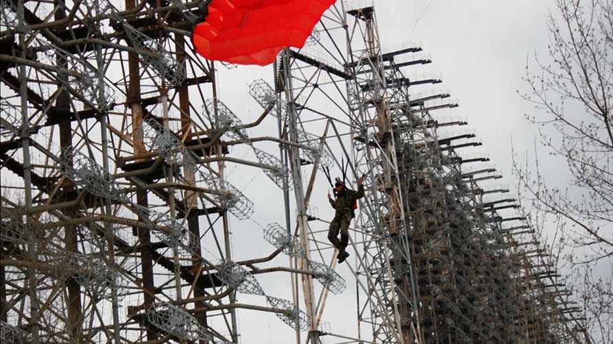 В апреле 2012 года группа любителей прыгать с парашютом с высотных сооружений (так называемые Бейсджамперы – base jumping) проникла на территорию чернобыльской зоны отчуждения, прошла пешком 28 километров до объекта Чернобыль-2 и совершила ряд прыжков с антенн загоризонтной радиолокационной станции Дуга. Хладнокровно поиграв своими жизнями, и получив заслуженную дозу адреналина бейсджамперы-самоходы спокойно удались за пределы отчужденных территорий.