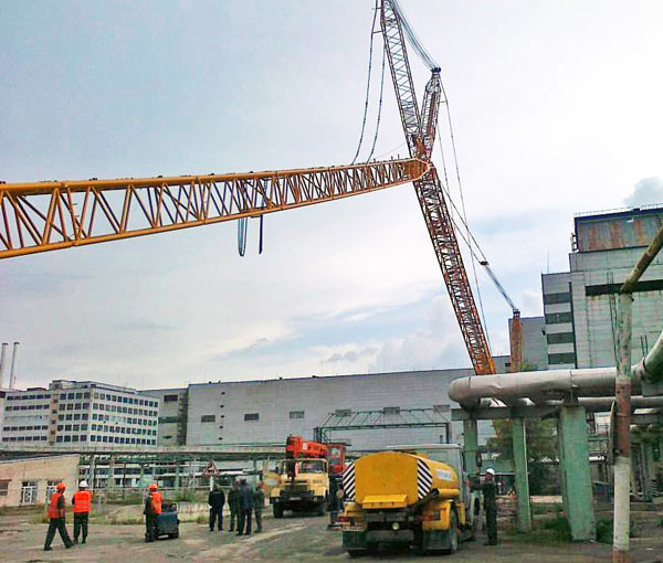 Технические характеристики крана DEMAG СС-8800-1 также выдающиеся – грузоподъемность составляет 1600 тонн. Длинна основной стрелы крана – 156 метров, длина дополнительной стрелы 108 м. Контроль за управлением крана (наблюдение за грузом, крюком и т.д.) осуществляется с помощью системы телекамер.