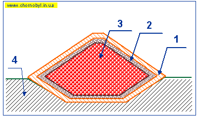 В течение первых месяцев (май – июнь 1986 года) после аварии на ЧАЭС были разработаны проекты земляных траншей для твердых радиоактивных отходов. Земляные траншеи предназначались для захоронения негорючих твердых отходов 1 и 2 (согласно СПОРО-85) групп загрязненности (грунт, строительные конструкции, отработавшие транспортные средства, приборы и т.п.).